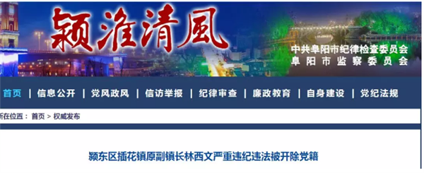 日前,经阜阳市监委和颍东区委批准,颍东区纪委监委对颍东区插花镇原副镇长林西文严重违纪违法问题进行纪律审查和监察调查。