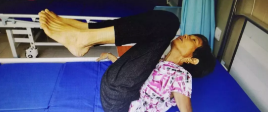 阜南有个名叫张国珍的农妇,多年重度脊柱畸形,丧失劳动能力,不能直立行走,不能平躺睡觉,不能正常吃饭。大家伙都喊她“折刀人”