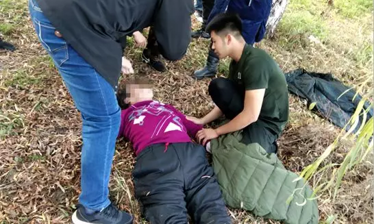 成功将女子救上岸后,一名消防员清理女子口中的异物,热心群众拿来棉衣给她保暖,并利用水桶让抬高女子腹部,拍打后背进行急救。