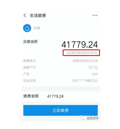 阜阳现天价水费单!两年未交水费,违约金4万?