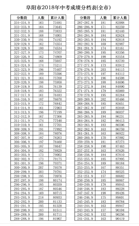 2018年阜阳市中考学生成绩,分档表新鲜出炉,快来看看你家孩子排在多少名!