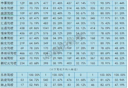 2018年11月份全市驾驶员培训学校考试质量情况通报如下:参加科目一理论考试共计11157人次,合格8154人,合格率73.08%;参加科目二场地考试共计19379人次,合格7791人,合格率40.2